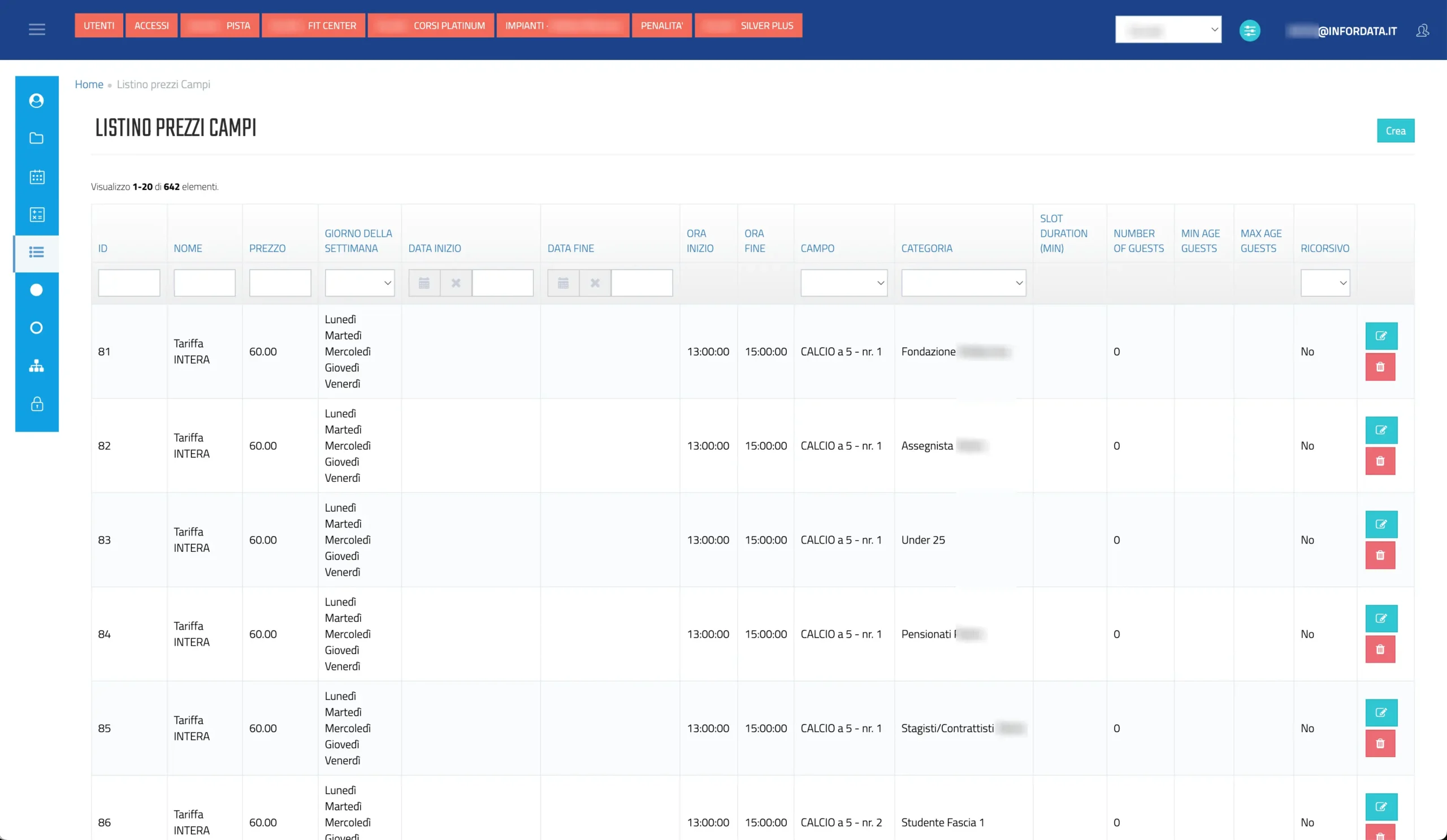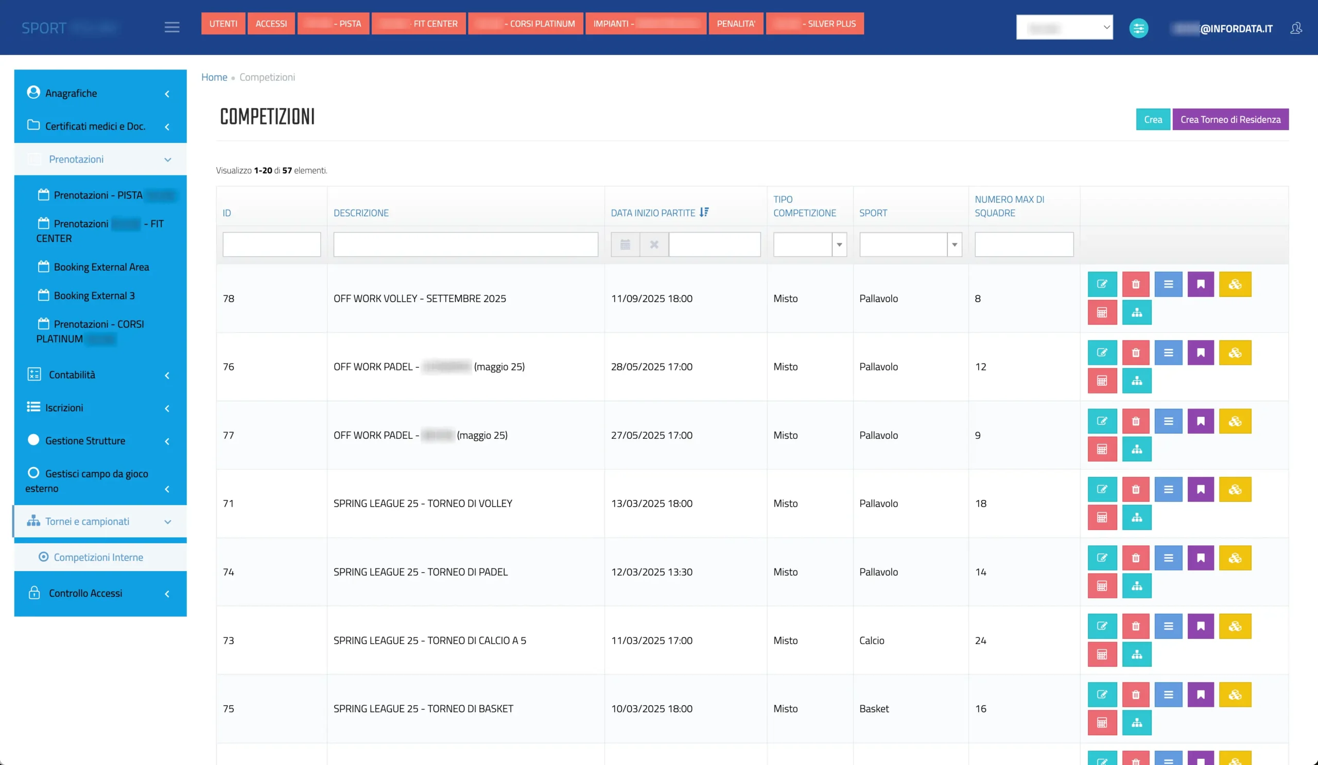 - prenotazioni di campi e corsi