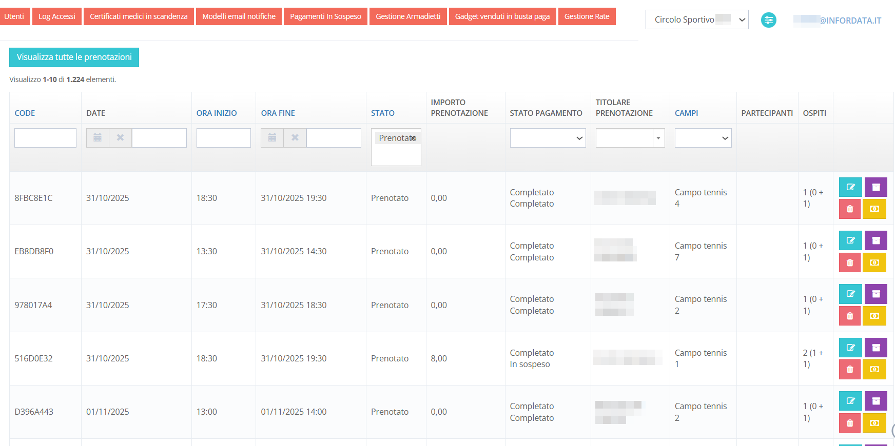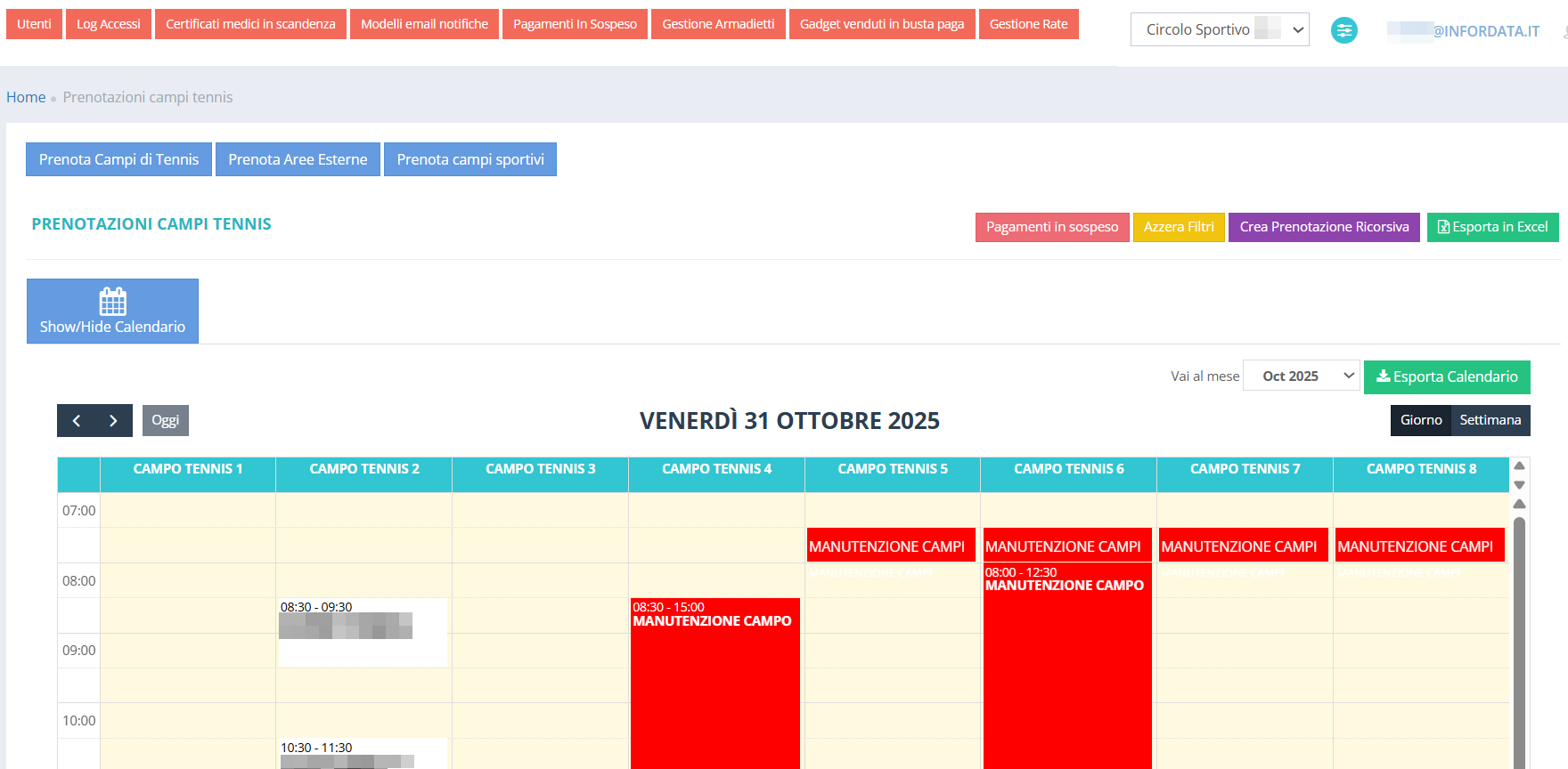 - prenotazione dei campi e dei corsi