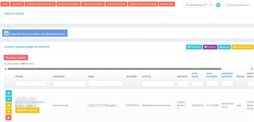 - gestione degli abbonamenti e dei tesseramenti