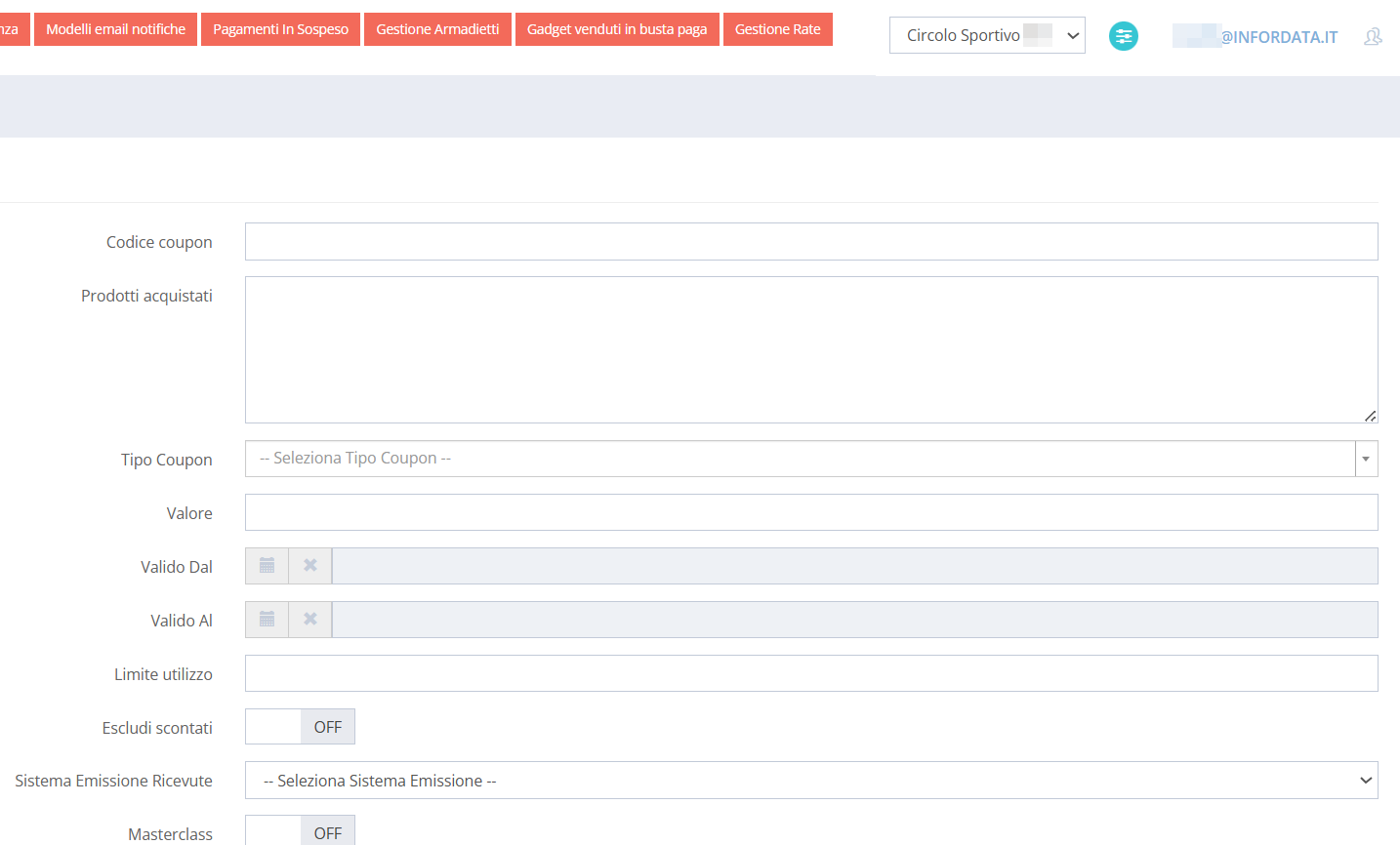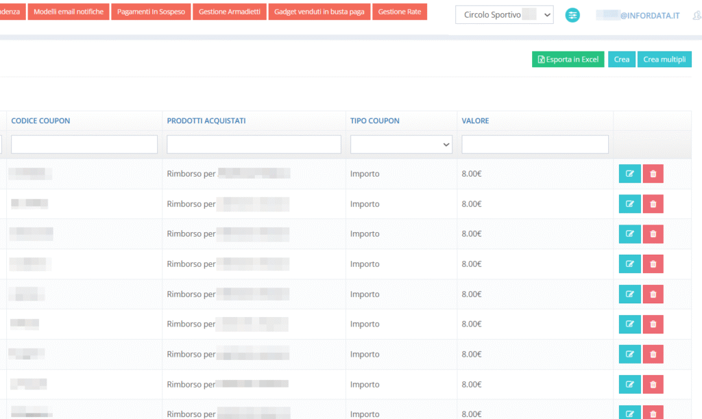 - inserimento di coupon promozionali